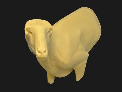 Mufflon seitlich mit Vorderlaufansatz links vom Betrachter aus gesehen. Der Träger ist etwas schwächer.